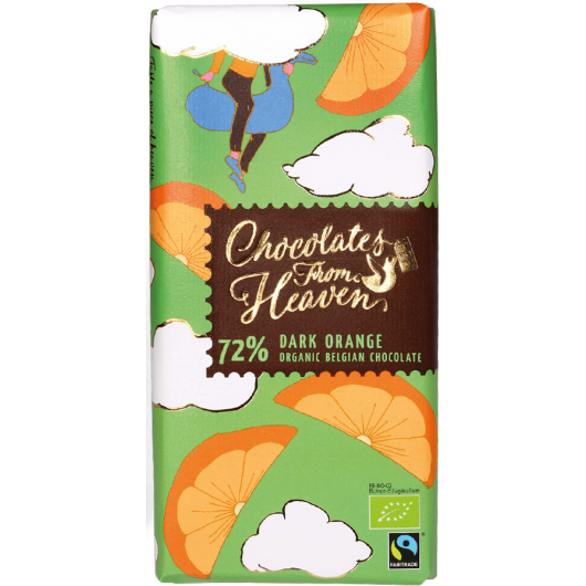 Belgijska temna čokolada Chocolates from Heaven s 74% kakava je izdelana v skladu s pravili BIO in FairTrade pridelave. Narejena je iz skrbno izbranih kakavovih zrn iz majhnih nasadov kakavovca iz Peruja in Dominikanske Republike.